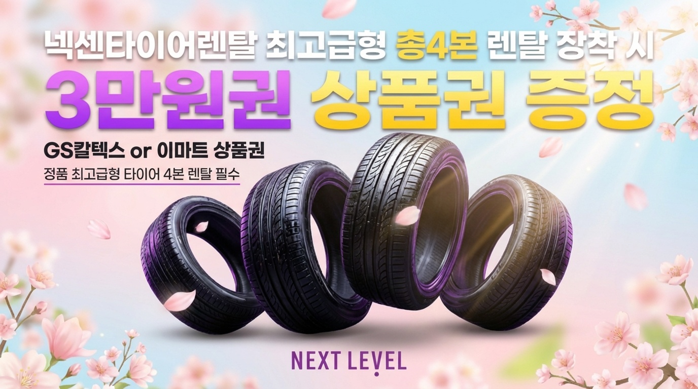 타이어 교체 주기가 다가오면 한꺼번에 나가는 목돈 때문에 망설여지기 마련입니다. 특히 주행 성능과 안전을 위해 최고급형 모델을 고집하다 보면 4본 교체 비용은 만만치 않은 부담이 되죠. 저 역시 매번 가격 비교 사이트를 뒤지며 최저가를 찾아 헤매던 시절이 있었습니다. 하지만 최근 ‘렌탈’이라는 합리적인 대안을 경험하며 생각이 완전히 바뀌었습니다. 단순한 할부를 넘어 프리미엄 케어 서비스와 파격적인 상품권 혜택까지 챙길 수 있는 2026년 4월 넥센타이어렌탈 ‘넥스트레벨’의 단독 이벤트 소식을 전문가의 시선으로 정리해 드립니다.