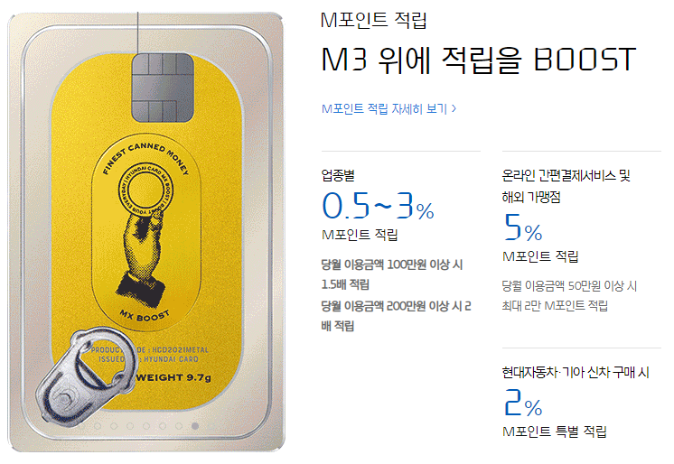 기존 현대카드 M포인트 적립 위에 적립을 더 얹어주는 현대 부스트카드