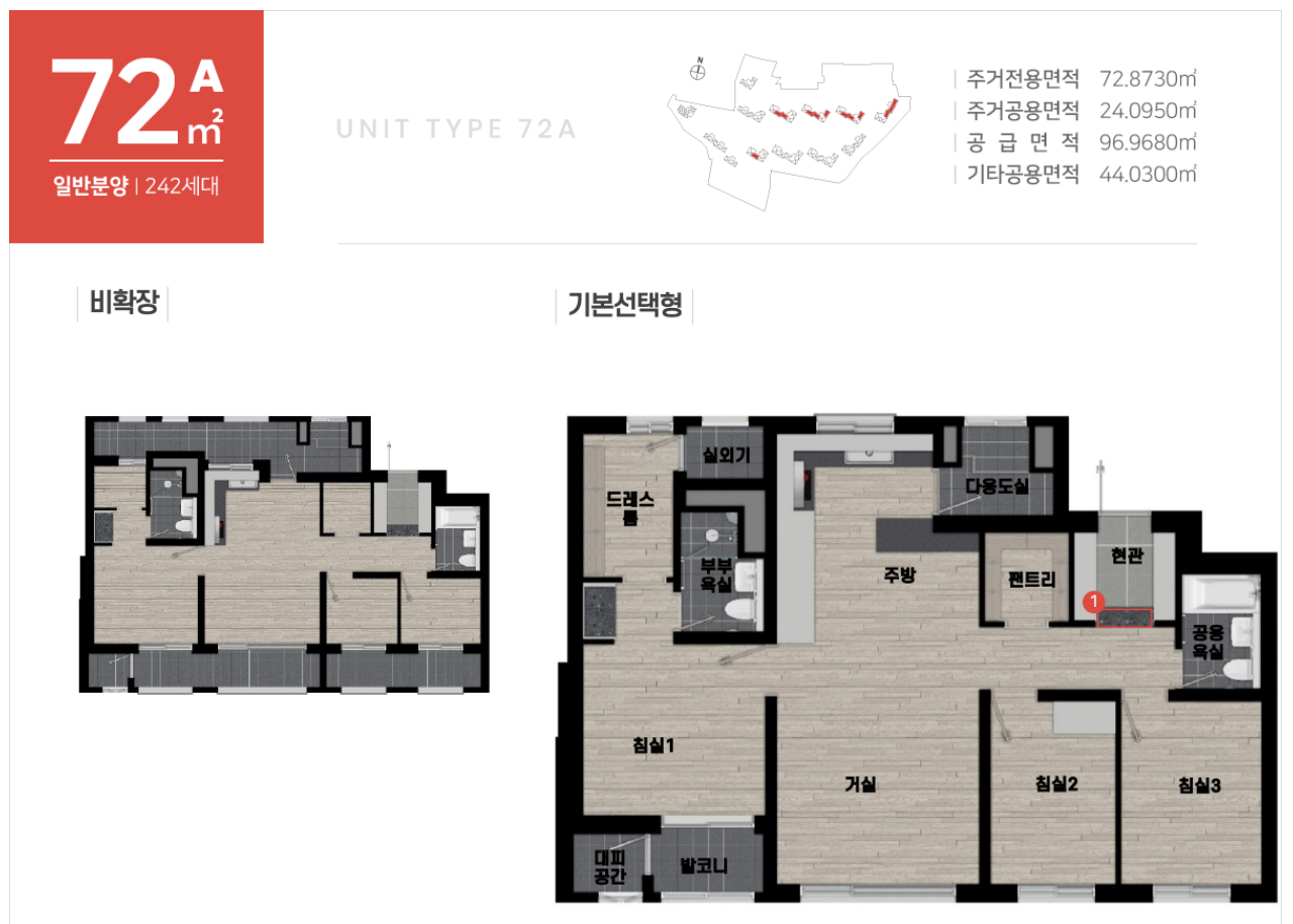 72A 타입의 경우 242세대를 분양합니다. 많이 선호하는 타입이 될 것 같습니다.