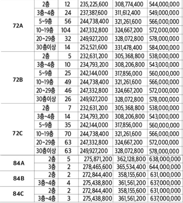 가장 작은 세대를 분양하는 84㎥ A, B, C 타입의 경우 총 18세대를 분양합니다.
