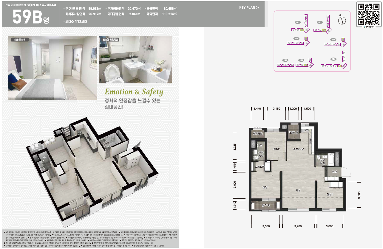 전주 만성동 에코르2단지 아파트 분양 전용면적은 59㎡ A, B, C 타입으로 공급합니다.