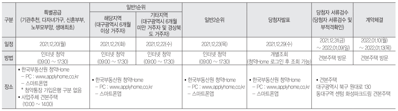 청약일정은 특별공급 12월 20일, 1순위 해당지역은 12월 21일, 1순위 기타지역은 12월 22일, 2순위는 12월 23일 입니다.