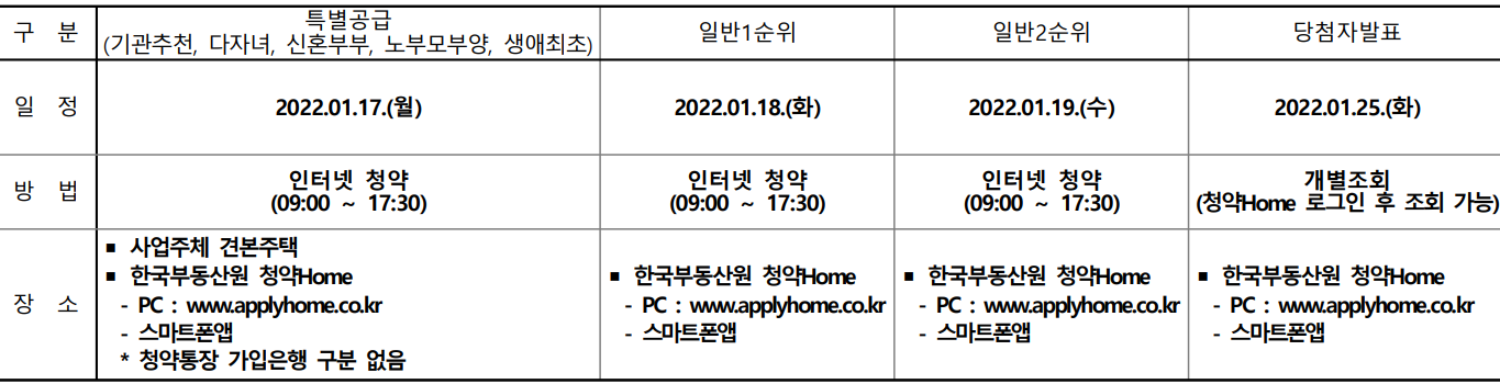 일반공급 1순위 1월 18일 화요일 인터넷 청약Home에서 청약신청이 원칙