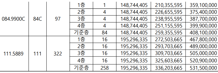분양가 4억 810만 원에서 5억 3,150만 원으로 평당가 1,272만 원/3.3㎡입니다.