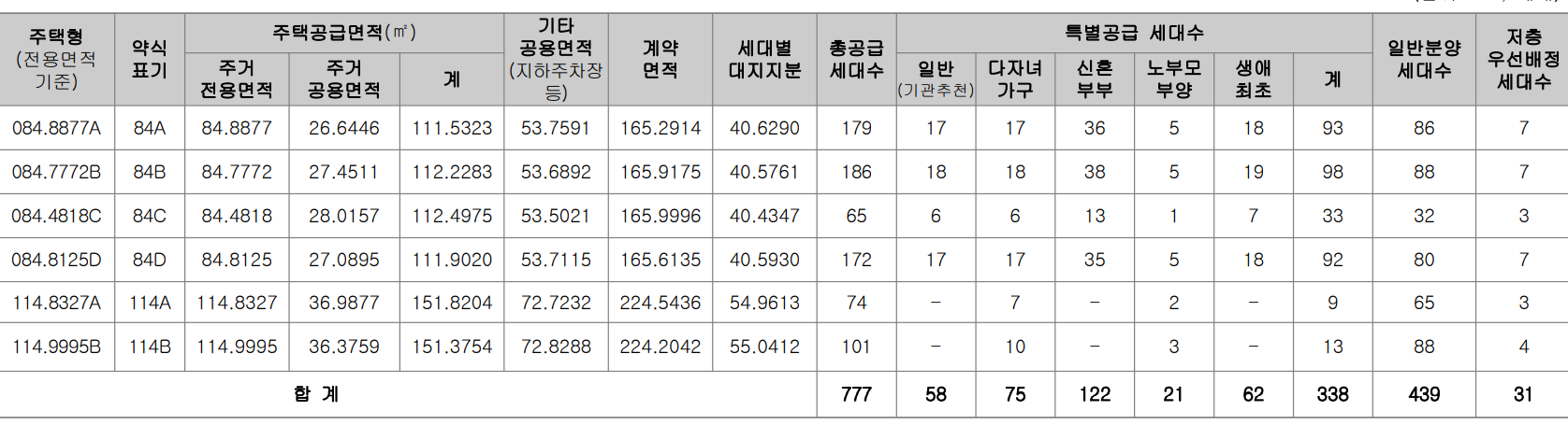 주택형별 특별공급대상 세대수는 공급세대수, 비율 등을 감안하여 배정하였으며 배정 호수가 없는 주택형에 대하여는 신청할 수 없습니다.