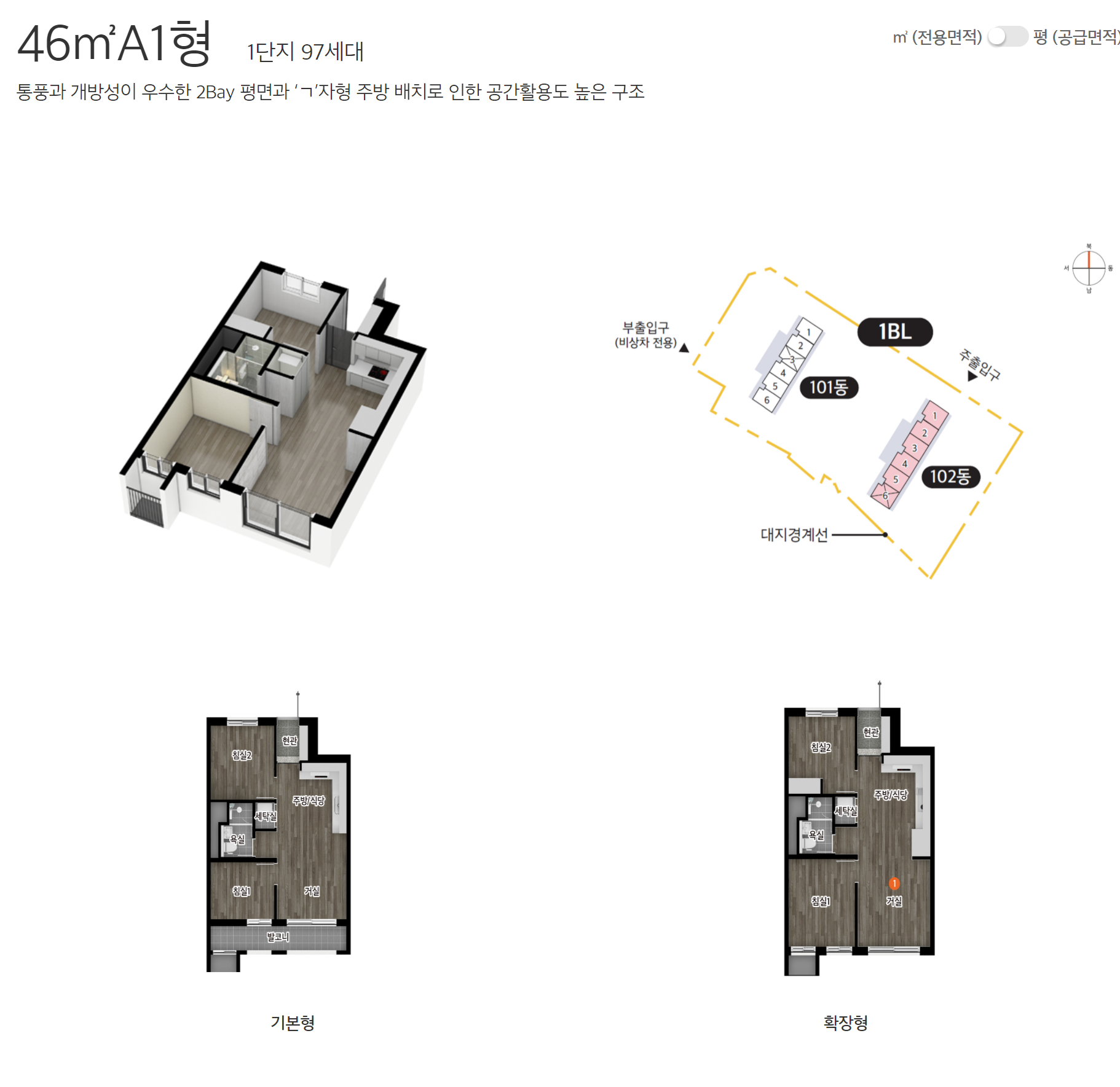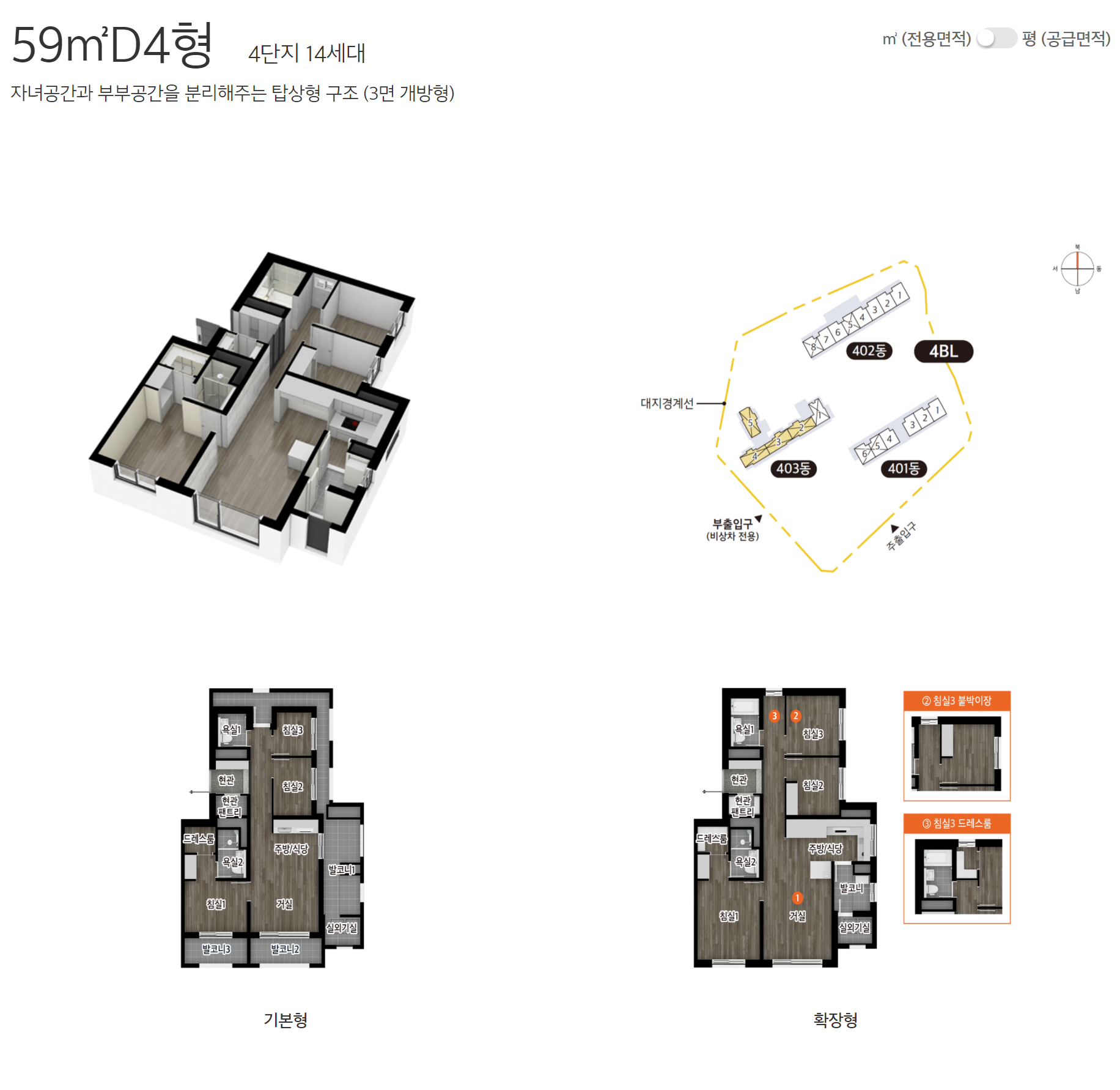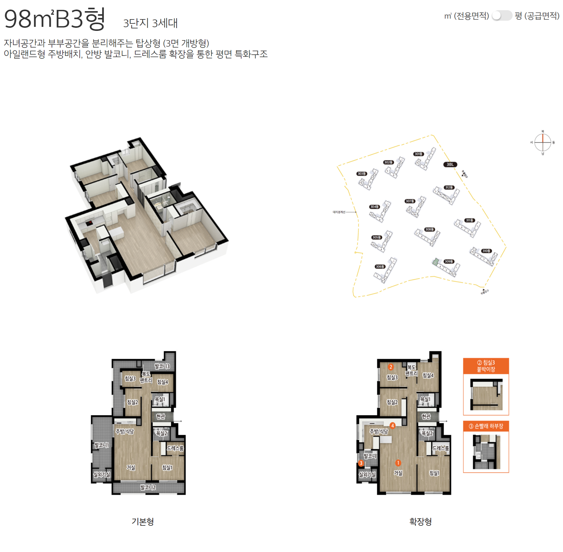 보다 자세한 편면도는 e편한세상 홈페이지에서 제작한 세대 안내 VR 영상을 참고하면 되겠습니다.
