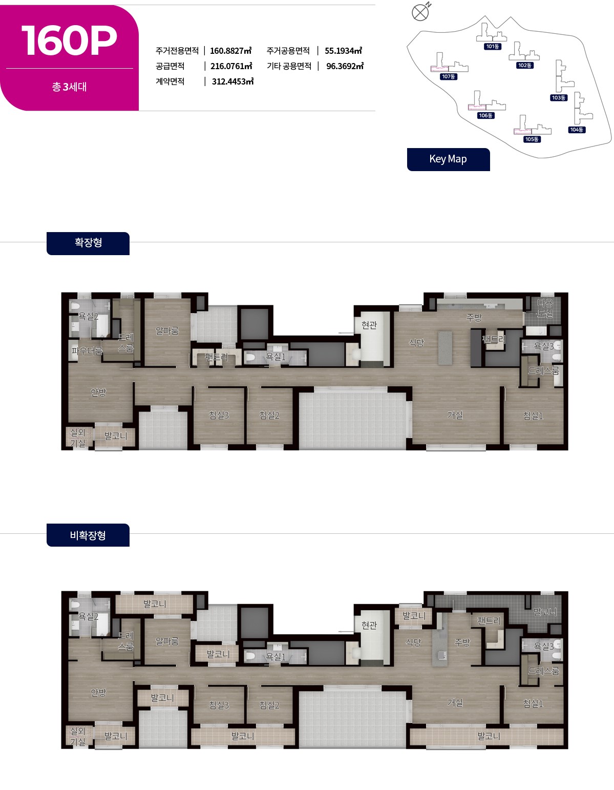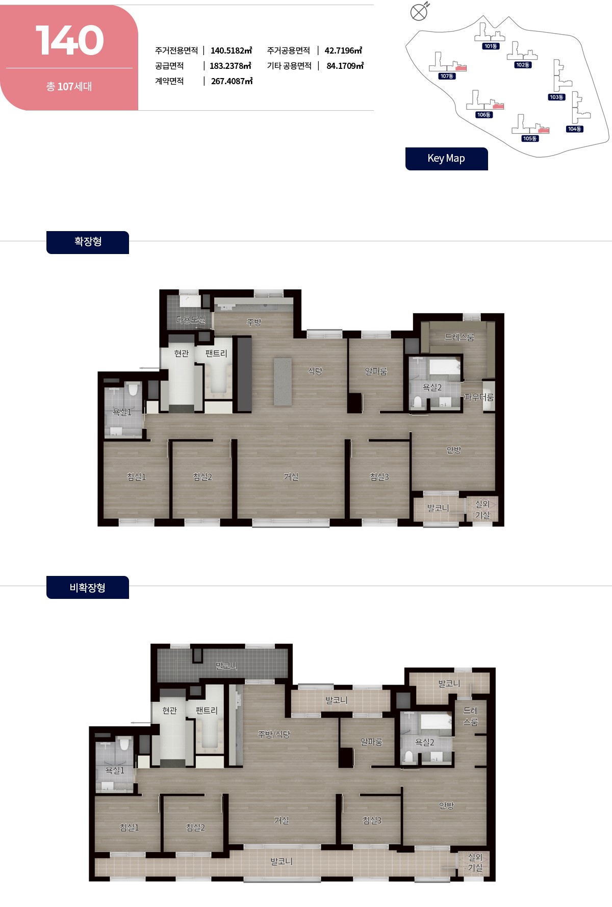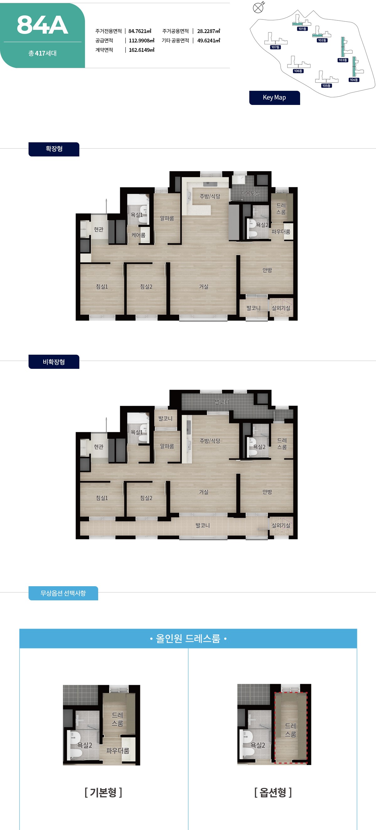 전 세대 남향 위주 배치와 선호도 높은 4-5 베이 판상형 설계로 되어 있습니다.