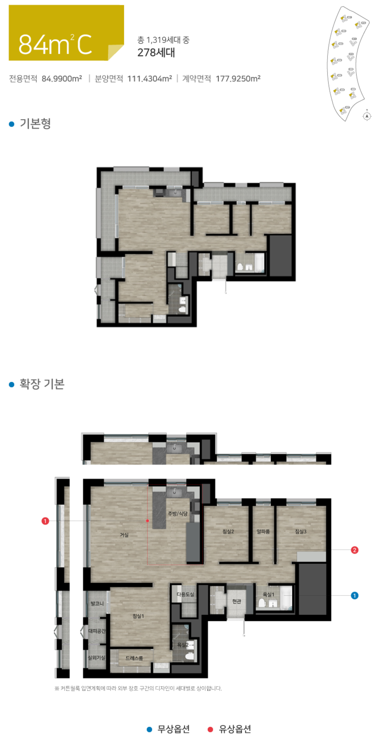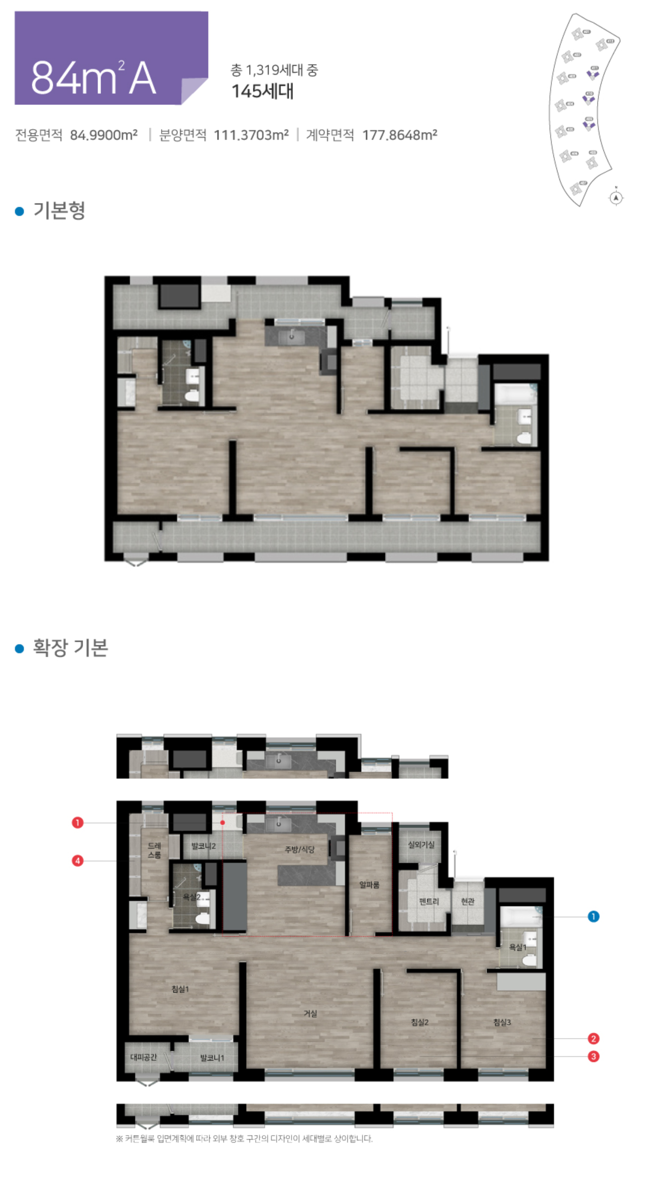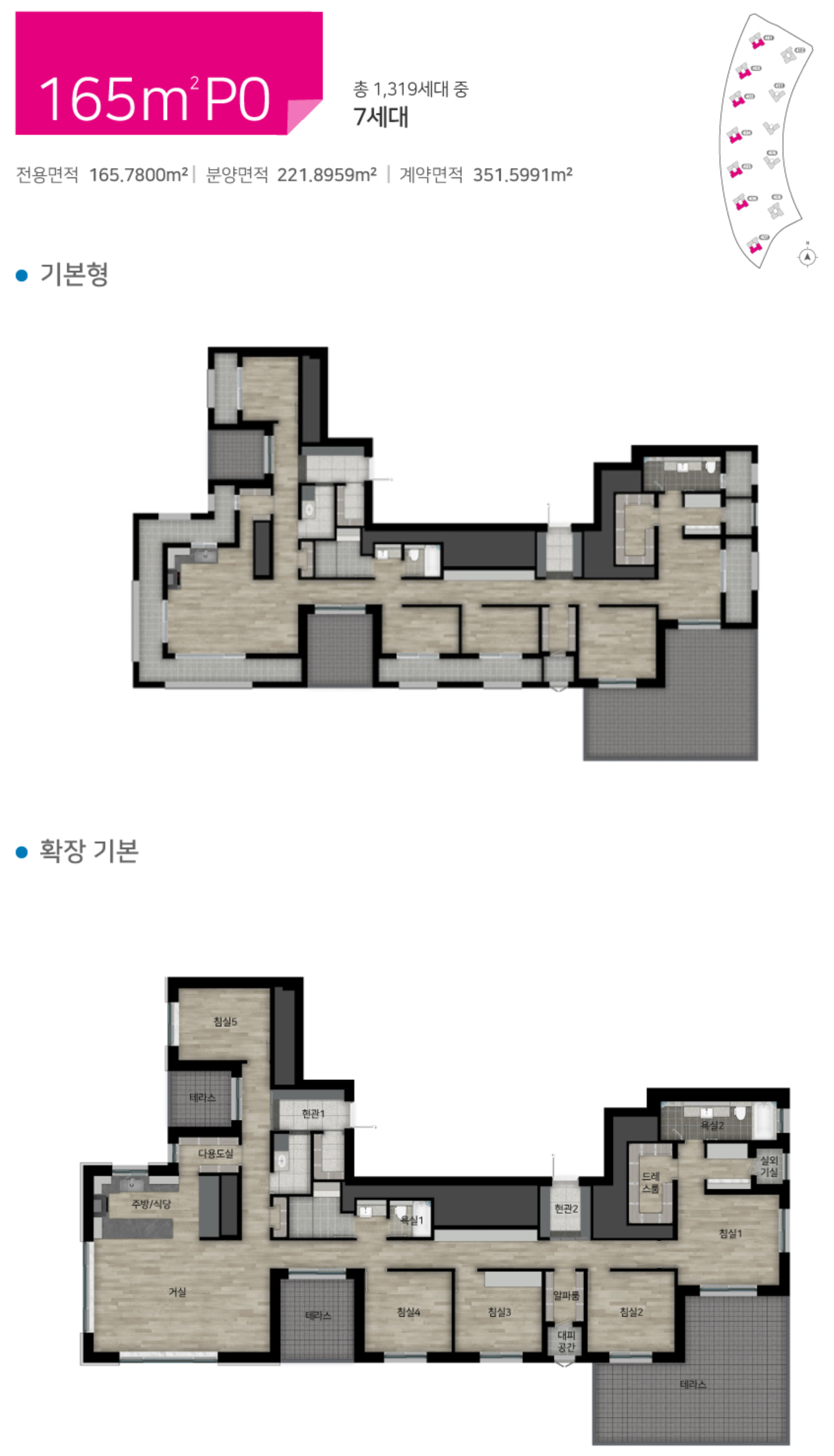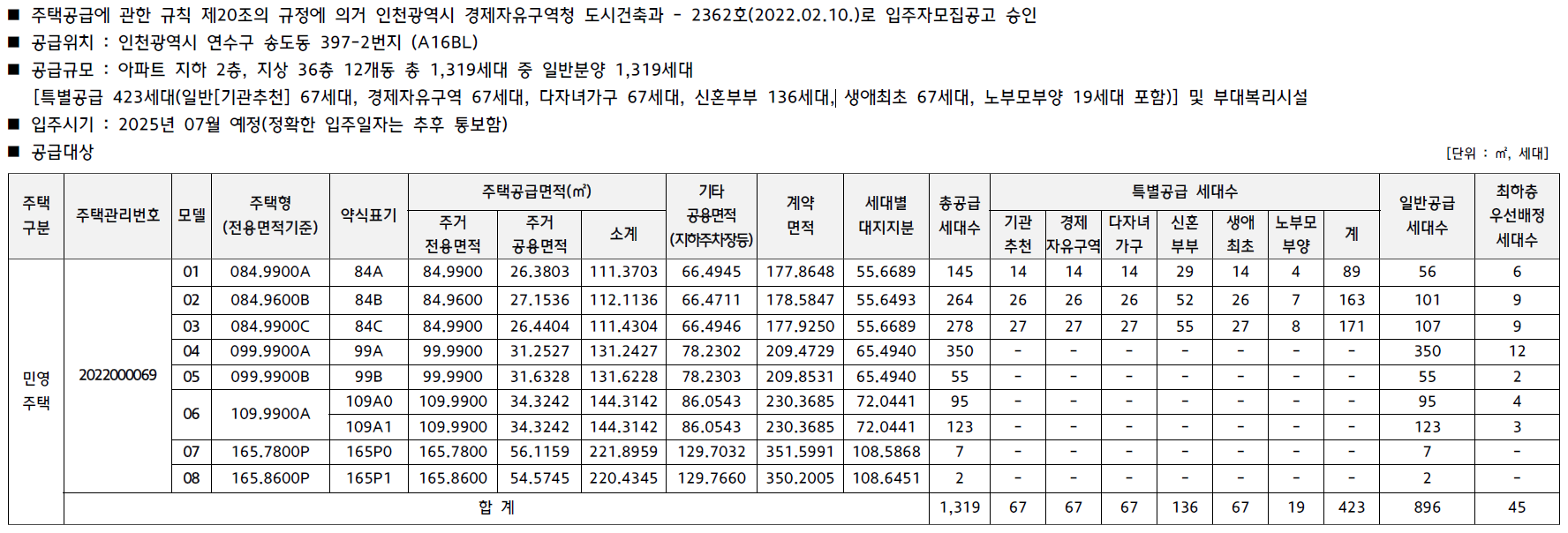 전용면적 84㎡ 부터 165㎡까지 총 1,319세대를 공급하며,