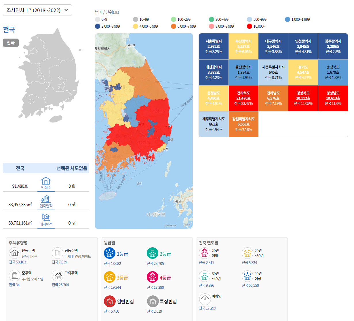 일반인이 접속해서 확인할 수 있는 정보는 통계정보로 지역별 빈집 현황을 확인할 수 있습니다.