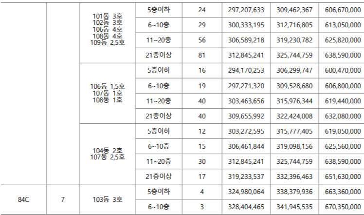 이편한세상 명덕역 퍼스트마크 아파트 분양금액은 최저 3억 9,150만원 부터 최고 6억 8,156만원으로 평면별 및 층별 공급에 따른 분양대금을 참고하세요.