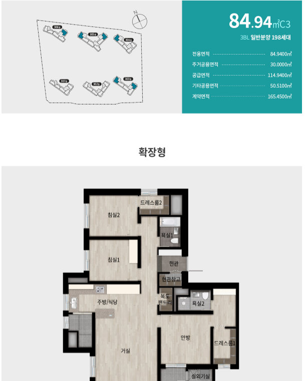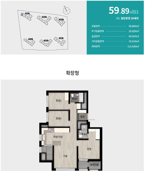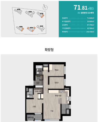 2024년 10월 3블록 분양 후 1, 2블록은 순차분양 예정으로 3블록 일반분양 세대평형은 다음과 같습니다.