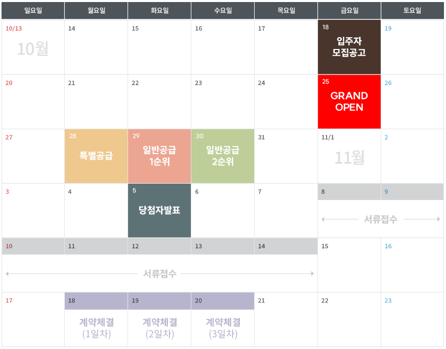 10월 28일 월요일 특별공급 청약을 시작으로
