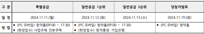 2024년 11월 11일 월요일 특별공급을 시작으로