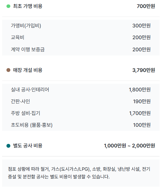 점포 환경에 따라 창업 비용이 달라질 수 있으므로 자세한 상담을 통해 확인하셔야 합니다.