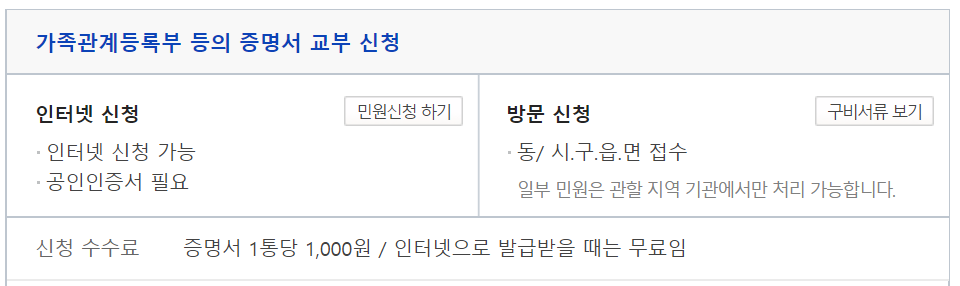 방문해서 가족관계등록증명서 발급방법이