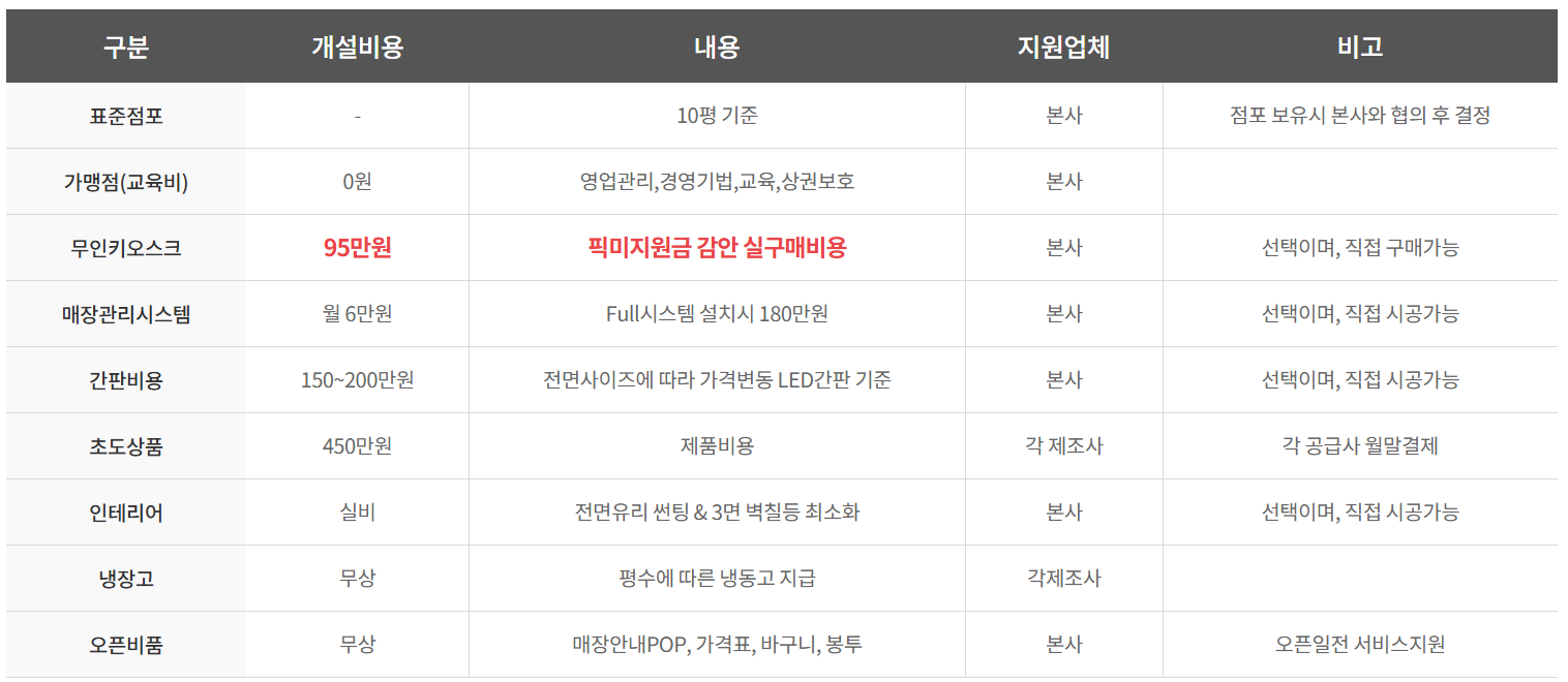 2. 픽미픽미 무인매장 창업 비용