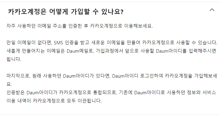 기존에 카카오계정은 대부분 다음메일이나