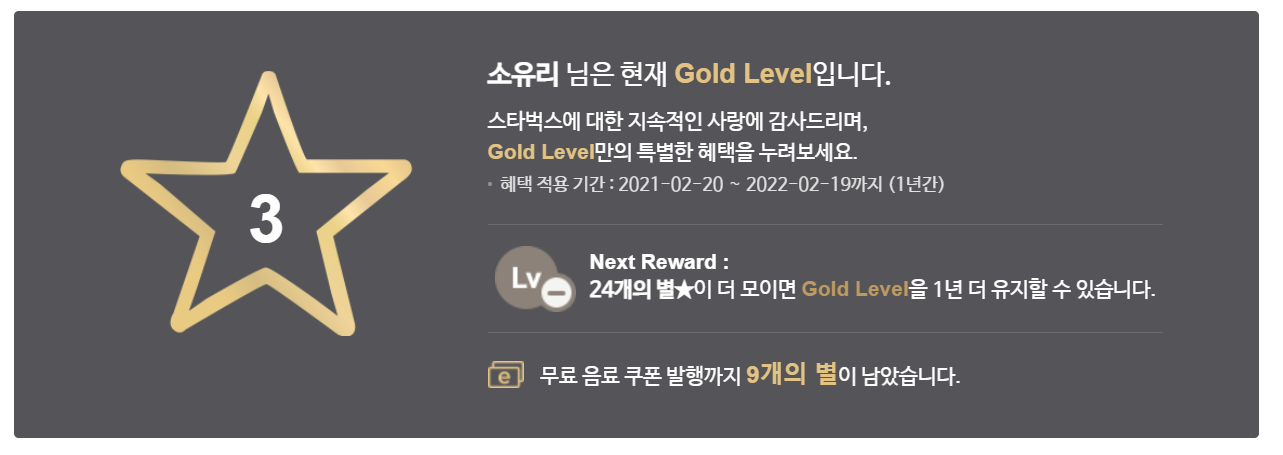 스타벅스 골드회원이 되어버렸네요.