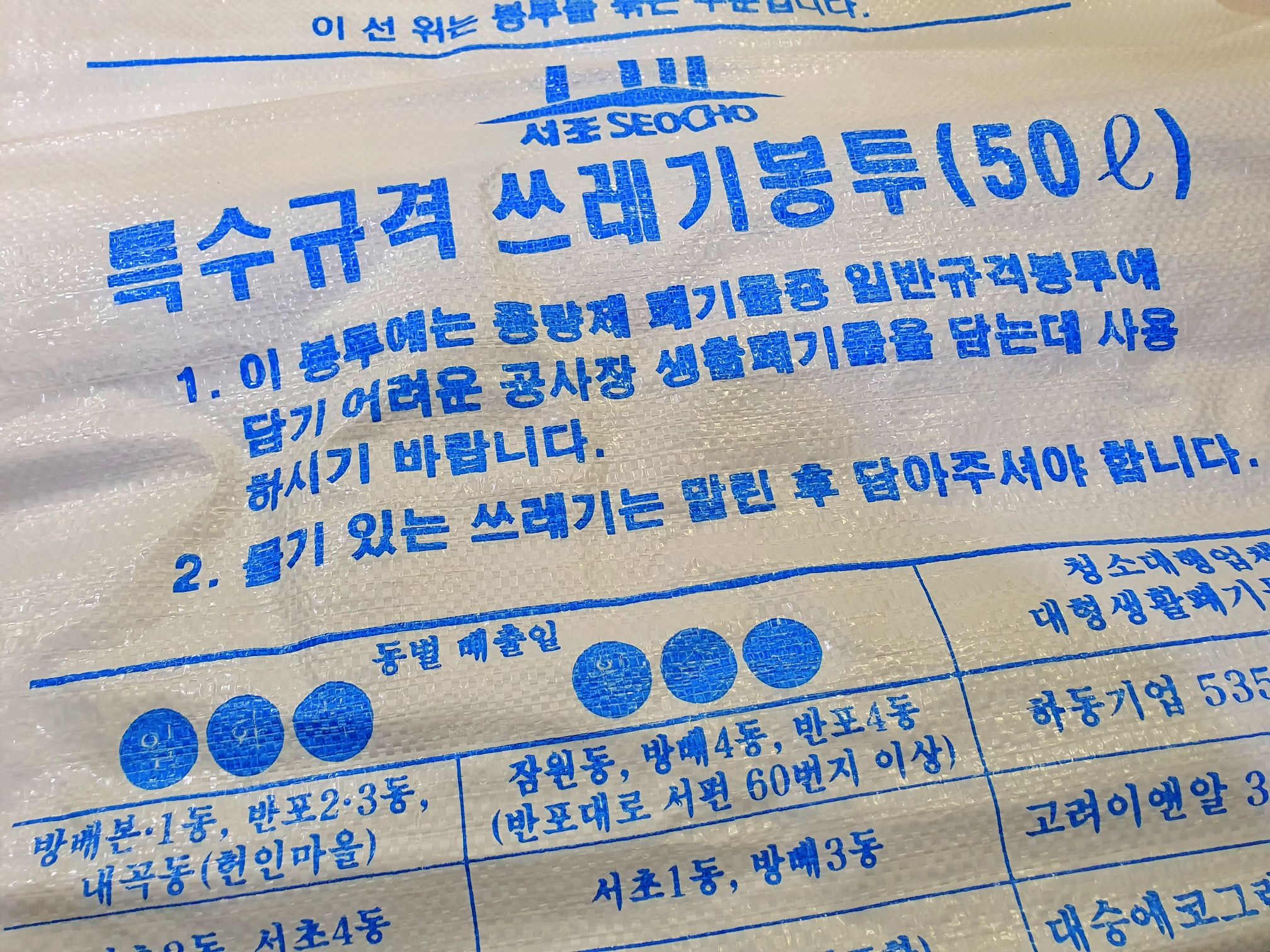 지역별로 특수마대쓰레기봉투 판매점도 다르고