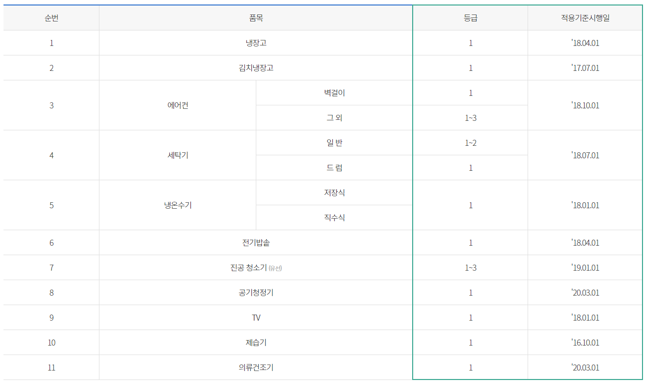 작년까지 진행되었던 으뜸효율가전제품환급사업이