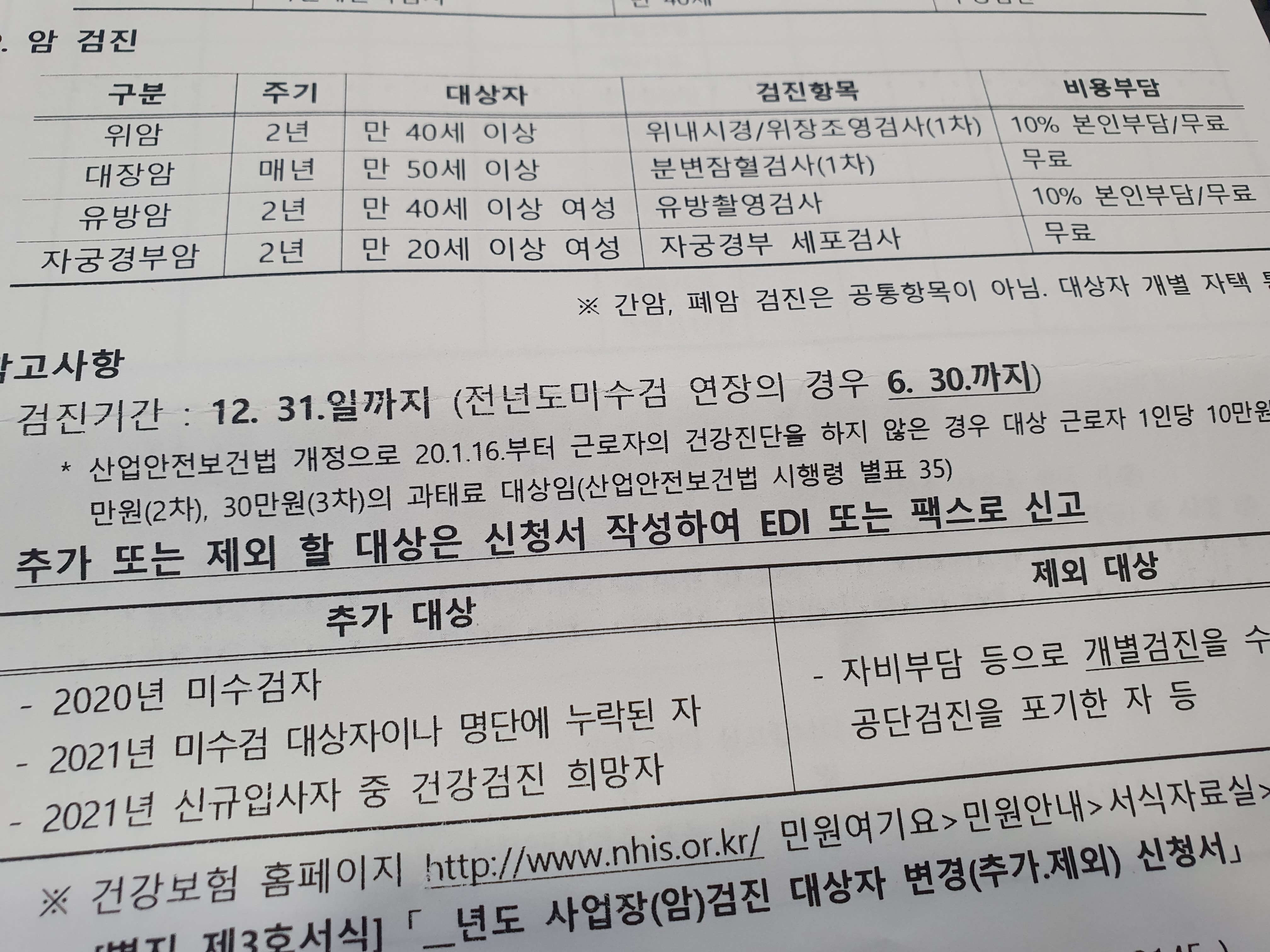 만약, 건강검진 받기 싫다면 사업장에서 검진 대상자 변경신청서를 작성해서 건강검진제외신청서를 작성하면 검진대상자에서 제외되므로 과태료 부과는 안 되므로 건강검진 제외신청을 신청하세요.