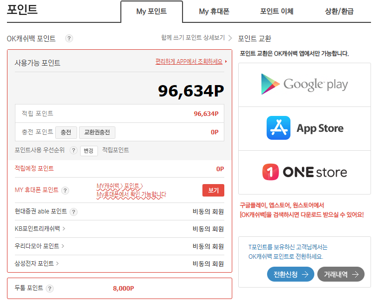 OK캐쉬백 포인트는 아직도 쓸만해요.