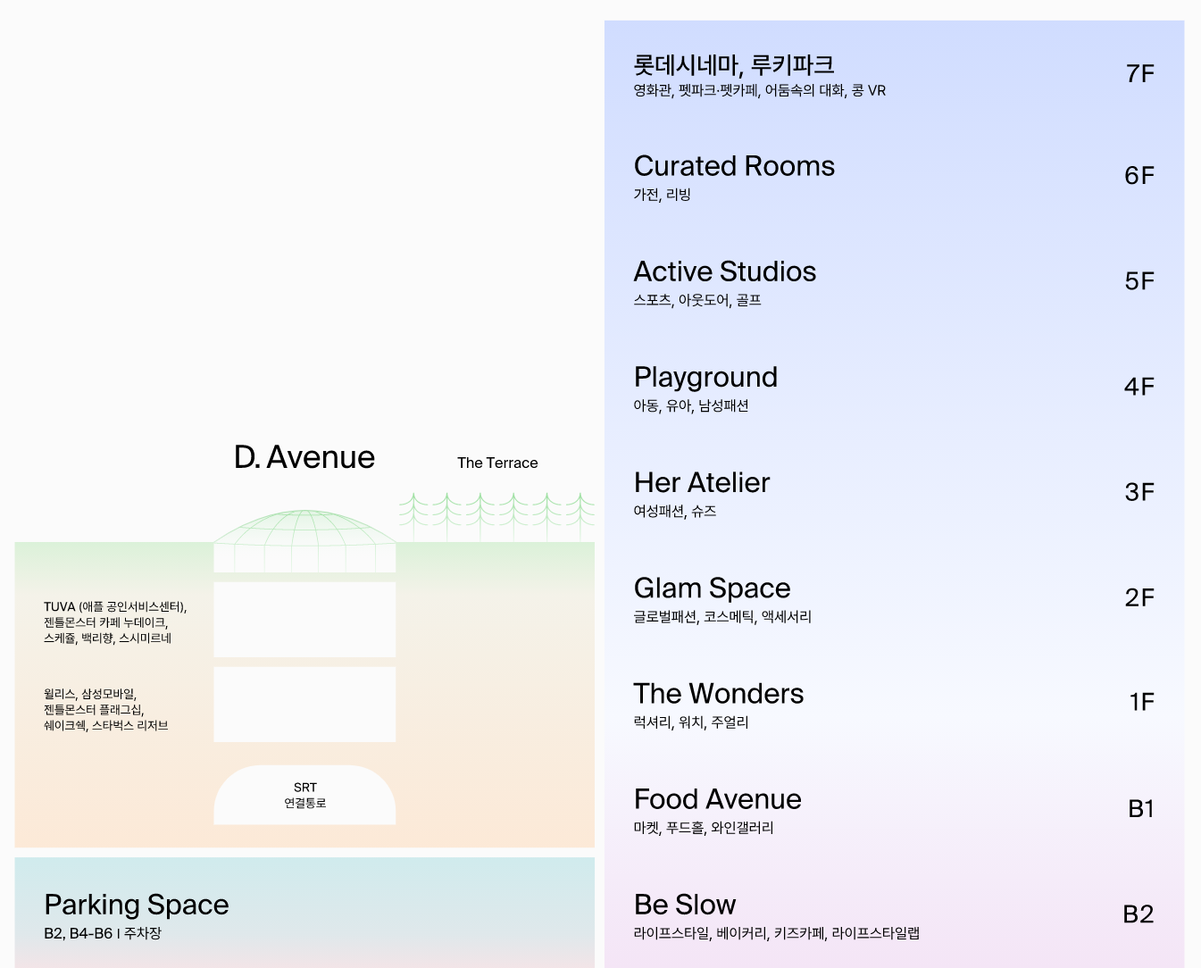 쇼핑공간은 층별안내를 참고하면 되고