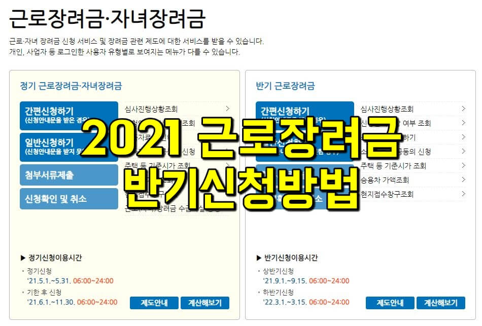 2021년 근로장려금 반기신청기간