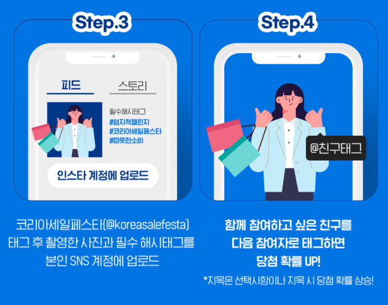 코리아세일페스타 가장 큰 이벤트 엄지척챌린지 함께 참여하고 싶은 친구를 다음 잠여자로 태그하면 당첨 확률이 올라간다고 합니다.