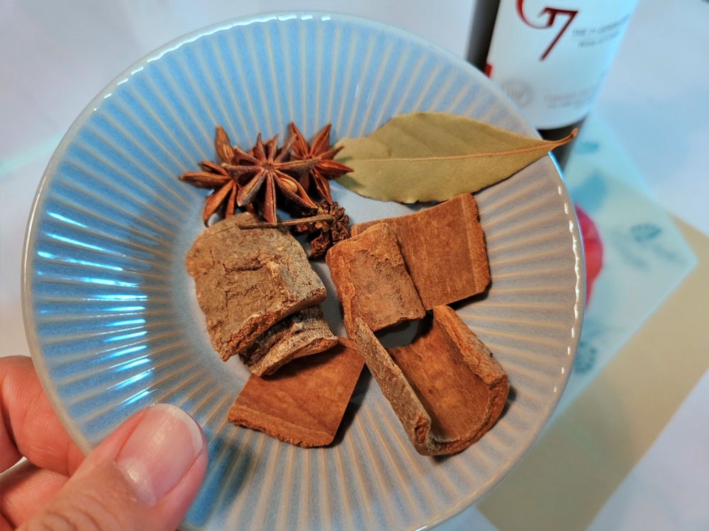 요리할 때 사용할려고 집에 두었던 계피와 팔각 그리고 월계수잎이 있어서 투입, 시나몬스틱이라도 있으면 다 만들어진 뱅쇼에 꽂으면 멋도 부릴 수 있겠지만 폼생폼사로 사는 인생이 아니다보니 쌀쌀한 기온에 몸을 녹여주는 뱅쇼 한잔 만들어 마시기 위한 것이니......